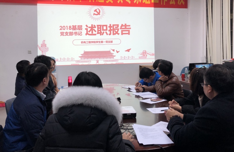 2019年1月3日下午,机电工程学院党总支在天河东区会议室召开了支部书记抓基层党建工作述职会议。本次会议由机电工程学院党总支书记邵超城同志主持,参加会议的有党总支副书记梁超鹏同志、总支支委、教工和学生各支部支委。