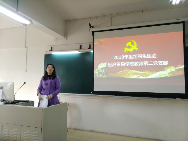 2019年1月11日下午3点,经贸学院教工第二党支部在西区综合楼401开展组织生活会暨民主评议会。经济贸易学院党总支副书记、院长邱秀芳同志,支部书记蒋晶同志,组织暨宣传委员张莉同志、纪检委员李文婷同志以及支部党员徐萌同志出席本次支部活动。