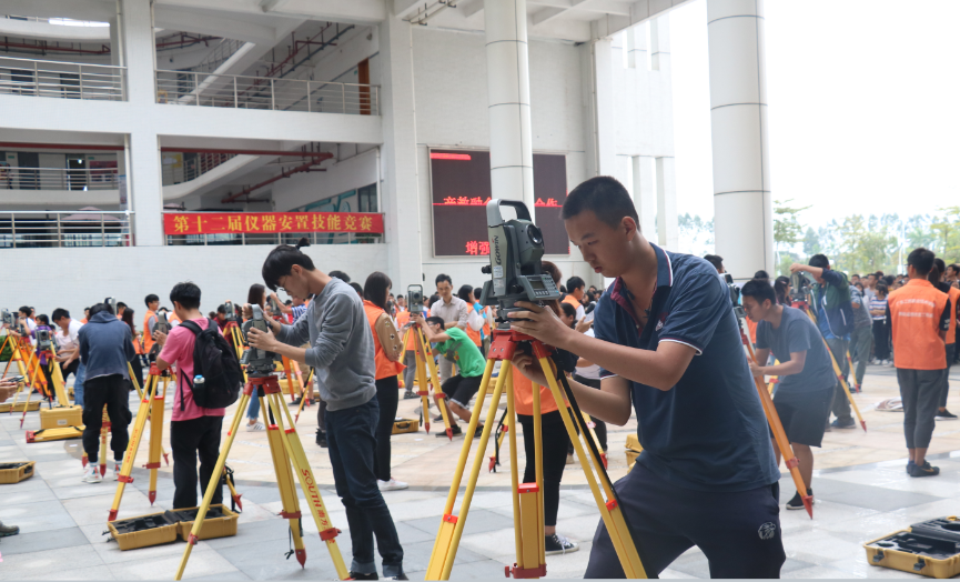 2018年10月23日,测绘遥感信息学院在白云校区校训广场举办了第十二届仪器安置技能竞赛,此次活动由土地管理教研室承办,测绘学院团委学生会协办,测绘遥感信息学院党总支副书记李元,副院长任高照忠,土地管理教研室主任张齐周,工程测量教研室主任候林锋,工程监理教研室主任林敏,房地产教研室主任陈一,地理信息教研室主任黄铁兰,学工办主任陈君浩,莅临本次大赛的嘉宾有广州智迅诚地理信息科技有限公司总经理龙腾,广州智迅诚地理信息科技有限公司副总经理孙松梅。测绘遥感信息学院17级全体在校学生参加了本次活动。