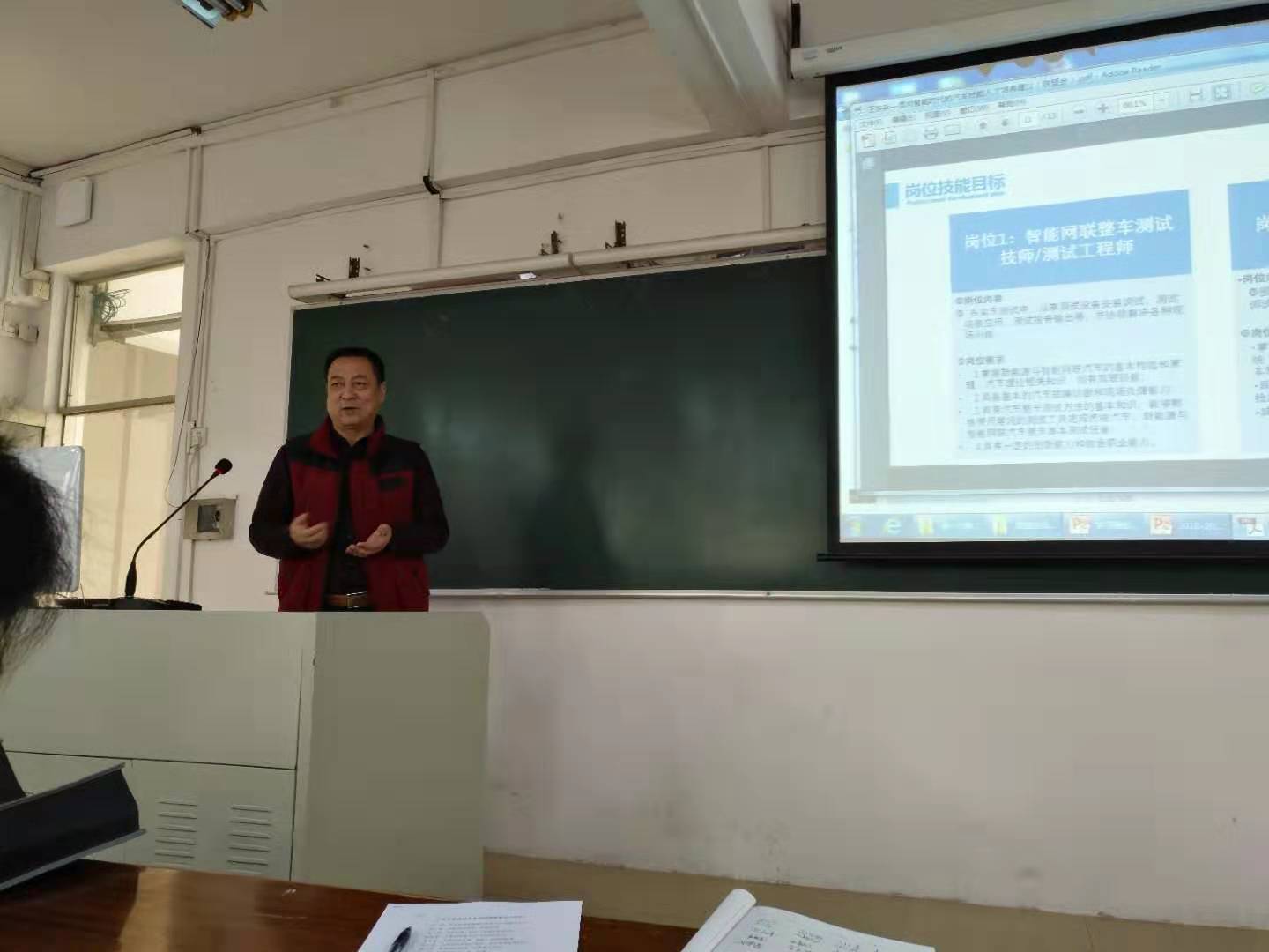 接着,新能源汽车技术专业带头人郇锐铁老师向全体教师分享了参加智能网联汽车培训的内容和学习心得。