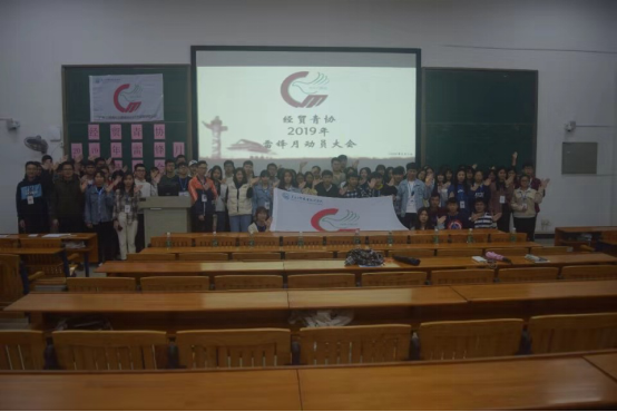大会的最后,志愿者们和班级代表们移步台上合影留念,至此,本次经贸青协雷锋月动员大会于19:35圆满结束。