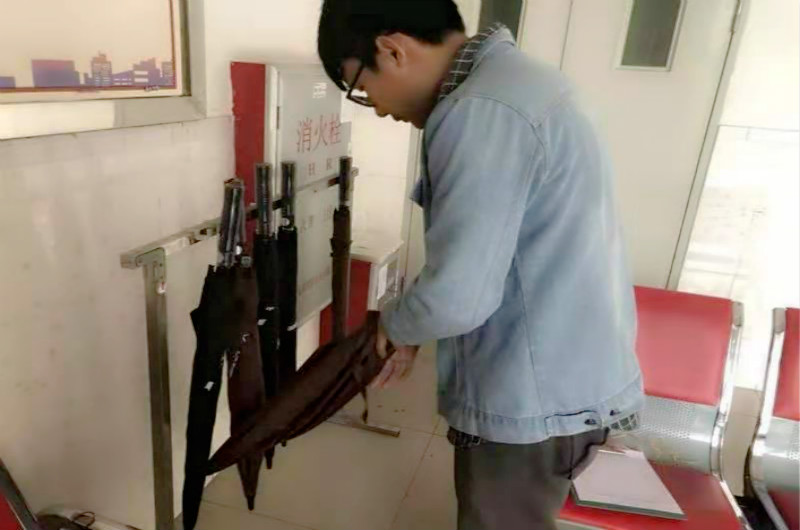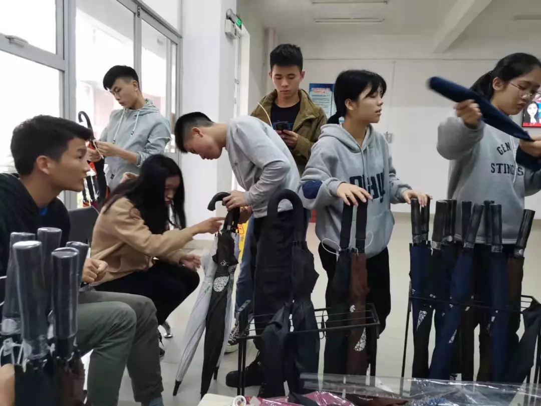 本次活动在志愿者们有序的配合下拉开了序幕,志愿者们认真检查每一把雨伞的质量问题,进行详细的统计,对每一把雨伞进行编号以及修补,只为了能让广大师生更加方便的取用以及归还爱心伞。