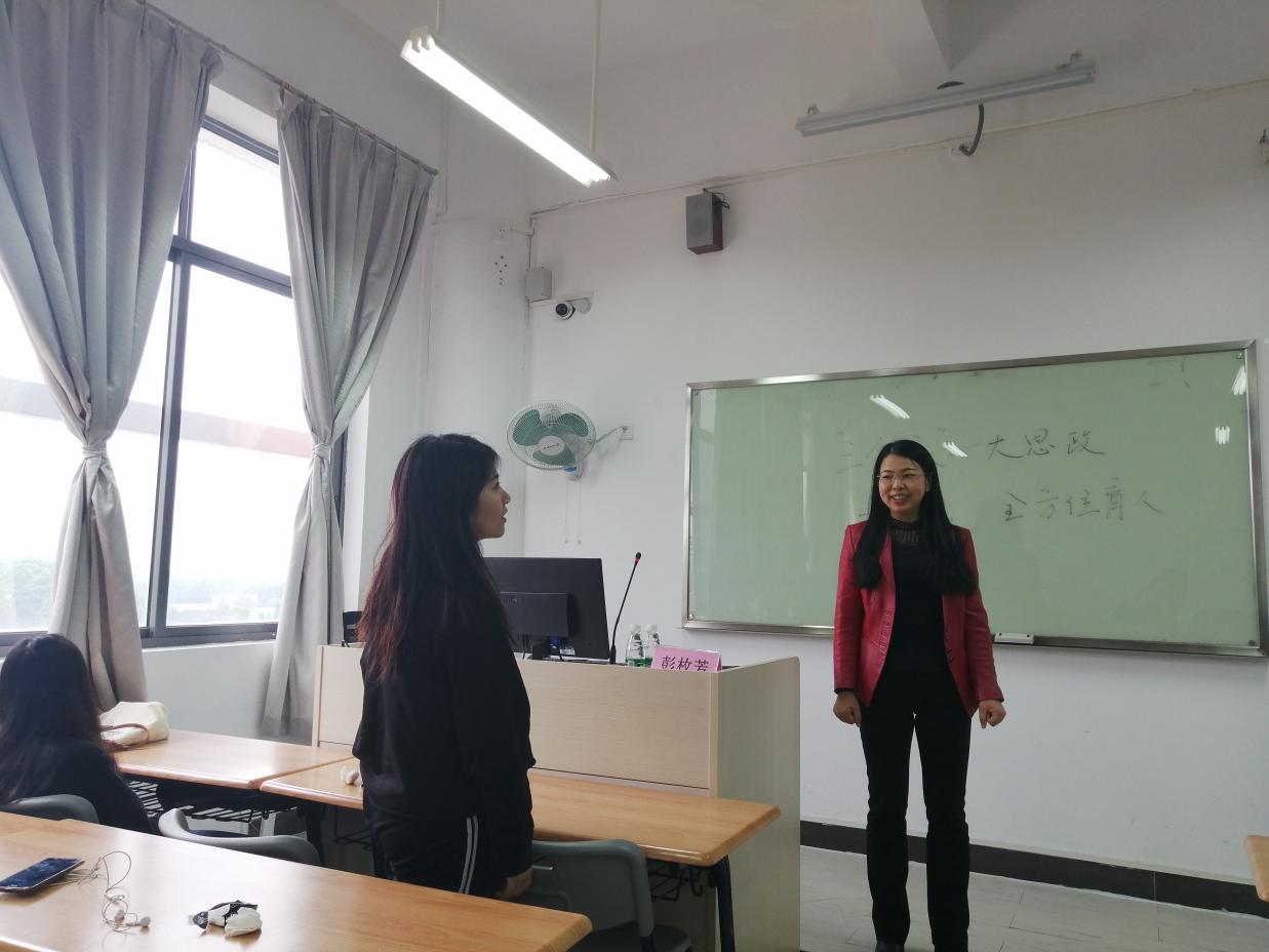 为响应广东省教育厅《关于做好2019年春季学期高校第一堂思想政治理论课工作的通知》,3月18日,由应用外语学院党总支副书记、院长彭枚芳主讲的思想政治理论第一课“立德树人,敬业奉献”在明德楼一区505正式开讲。全体积极分子及发展对象参加了此次学习。