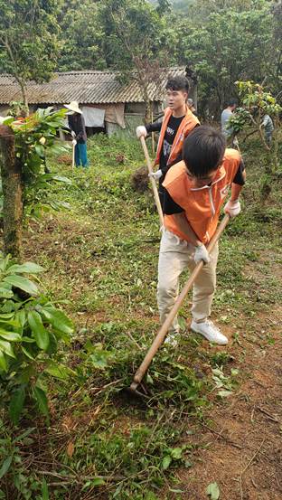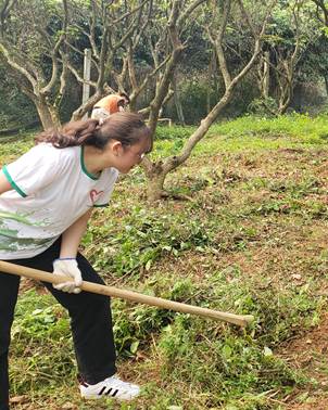 学生动手劳动除草