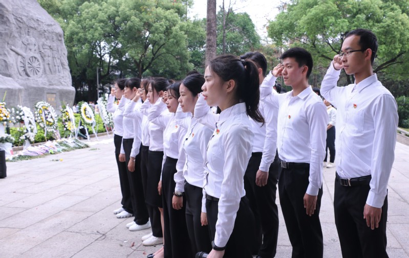 接着,全体人员在烈士纪念碑前整齐列队,全场静默肃立,向革命烈士们默哀致敬,表达了对烈士的深切思念和崇高敬仰。