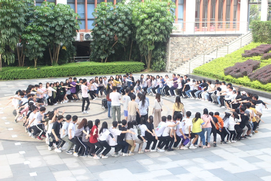 下午,于校训广场开展“素质拓展”,分组进行“信任人椅”“牵手起立”“触碰笔支”“曲线穿越”“齐心传递”5个项目,培养同学们团队精神、协调能力。