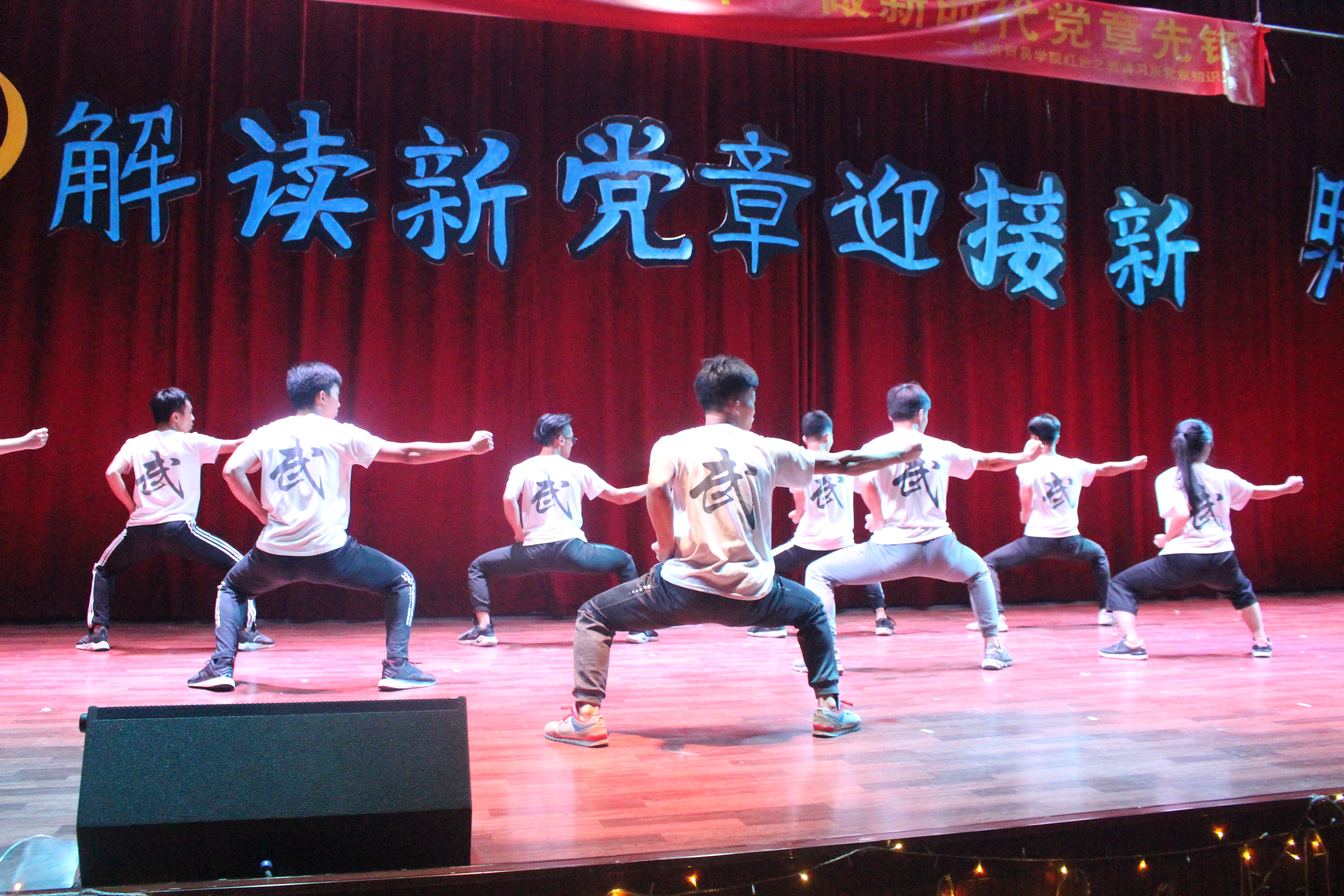 解读新党章,迎接新时代,本次活动是对经贸学院“红色之旅”讲习所培训班的学习效果检验,通过比赛巩固学习内容,提高学习成效,比赛充满知识性、竞争性、趣味性,达到了以赛带学、以学促用的目的,有效地促进了“两学一做”学习教育的开展。