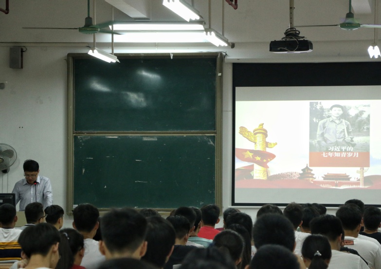 为了贯彻落实“学校关于做好2019年春季学期二级学院党总支书记、院长上好第一堂思想政政治理论课工作的通知(粤工贸院党宣【2019】2号)”的文件精神,及引导学生树立正确的世界观、人生观、价值观,2019年4月10日晚上7点,机电工程学院党总支副书记、院长徐勇军,在明德楼1-315课室讲授思政第一课,主题为《习近平总书记在梁家河的岁月》,参加本次学习的有机电工程学院积极分子、发展对象、学生会干部。