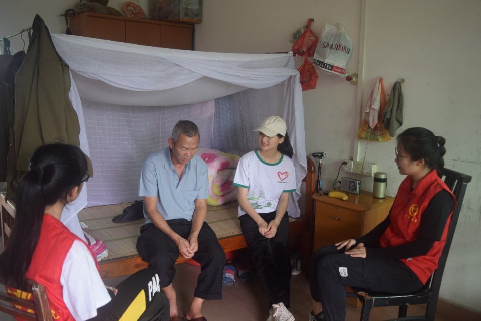 经过15分钟的车程,志愿者们抵达敬老院。敬老院里住着6位行动不便的花甲老人,伴随着一声声亲切的问候,志愿者们开始行动起来,认真地帮老人清理垃圾打扫角角落落,陪老人聊天解闷和倾听他们以往的故事。在志愿者勤恳的态度和饱满的热情下,给老人带去了洁净和欢乐,整个下午房间里笑声不断,为敬老院增添了不少欢快的气氛。