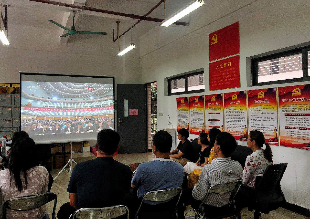 教师和学生党员、入党积极分代表观看直播