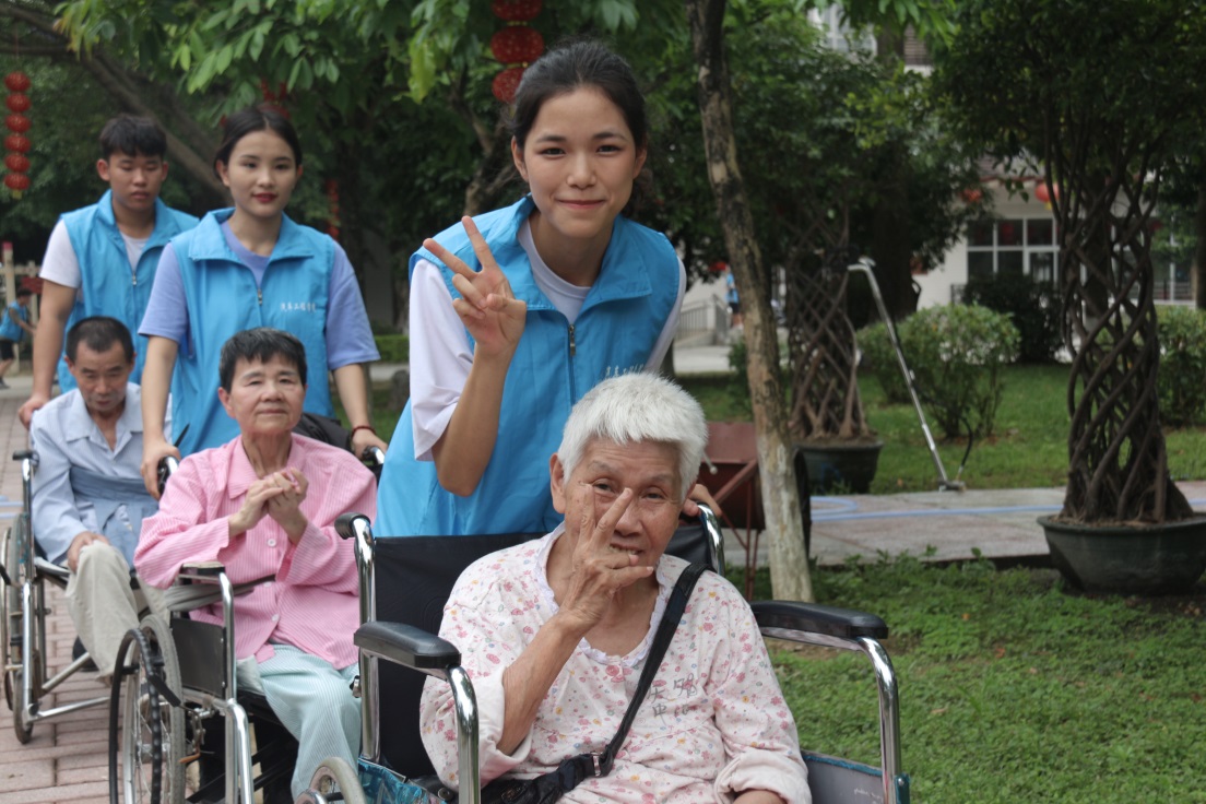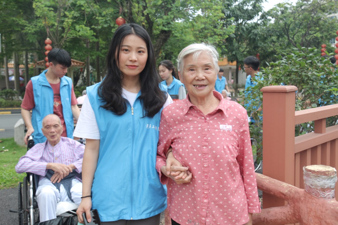 这次活动采用一对一的方式,即一个志愿者对接一个老人。负责人将志愿者们分配到了各个楼层邀请老人们前往慈慧楼大厅集合,随后开始今天的游园之旅。本次游园的路线是:慈慧楼—聆心花园—颐养园花园—金鱼池—慈恩楼—慈慧楼。在游玩的过程中,志愿者们陪着各自负责的老人边走边欣赏风景,有时候停下脚步,驻足池塘边,陪着老人聊天或者看着乌龟金鱼在水中游泳;有时候在休息区停下休息,喂老人吃些饼干喝些水;陪老人前往慈恩楼参加小游戏与抽奖活动。看到老人们脸上都洋溢着幸福和开心的微笑,志愿者们心里由衷的感到满足和愉快。随后,志愿者们将老人们送回到慈慧楼,结束了今天的游园活动。