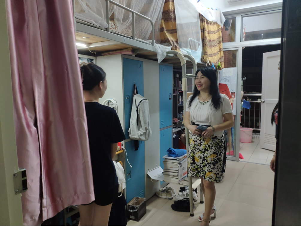 在走访学生宿舍过程中,王艳芬着重了解了学生在班级、社团、宿舍的基本情况,还关心询问大家在生活、学习、课外活动、职业规划等方面碰到的困难,并结合她的生活工作经历给大家提出了一些建设性意见。特别是,在走访子新书院4号楼828宿舍时,她和该宿舍的同学交谈日常宿舍生活趣事,鼓励同学们要认真学习,合理作息,共同为班集体营造良好的学习氛围,促进良好学风班风的形成作出努力。