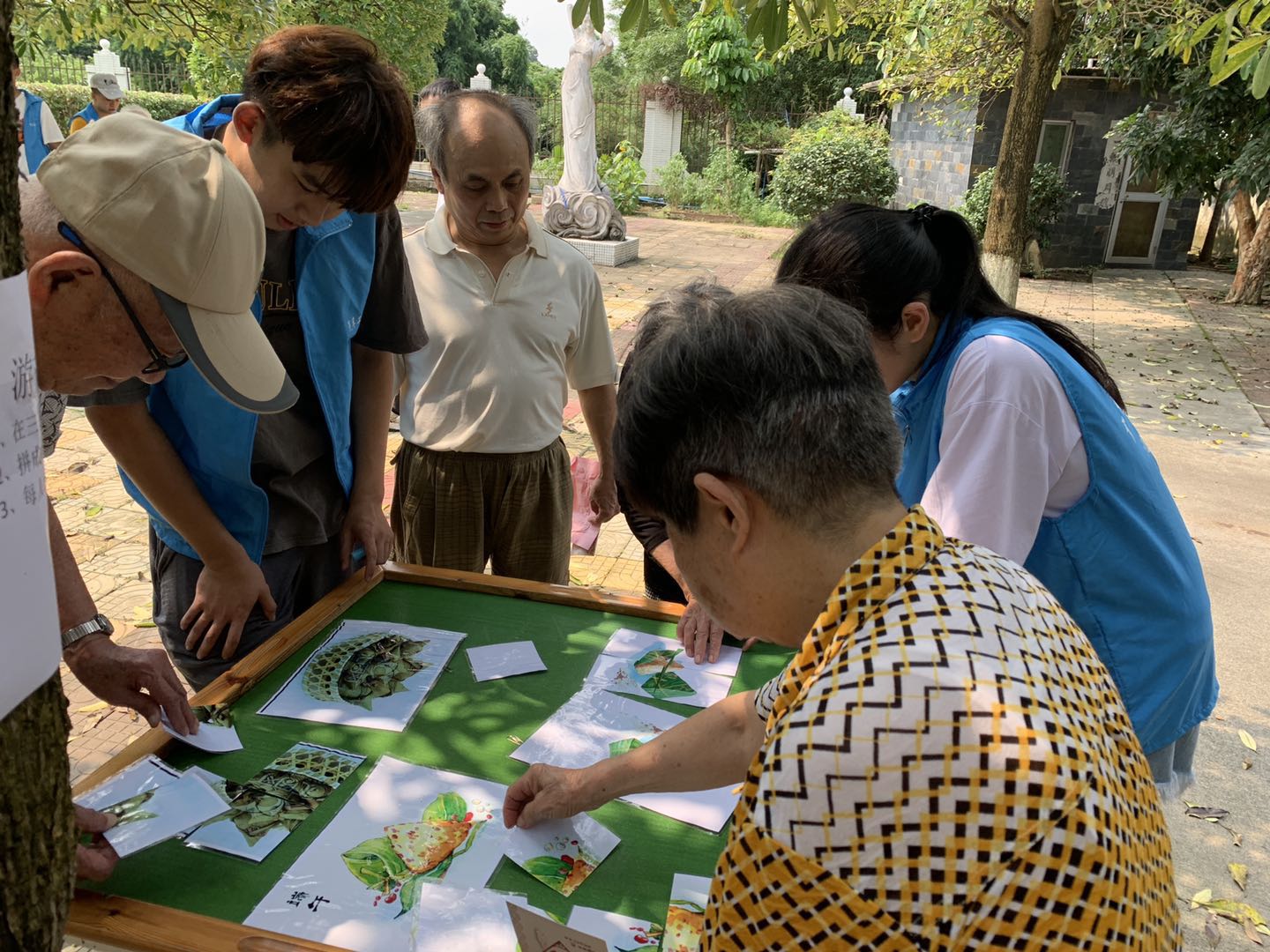 前期工作完成后,活动正式开幕,早在活动区跃跃欲试的爷爷和奶奶们都迫不及待的在签到处签到并领取相应的卡片前往游戏区。此次游园活动分为四个小游戏,分别是赛龙舟、抛沙包、端午节主题问答、趣味拼图。爷爷奶奶们可自由选择参加任何一项游戏并在完成一项游戏后盖上印章,在集齐12个印章后可到签到处兑换奖品。