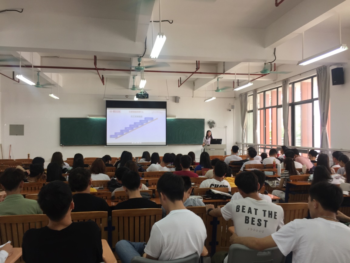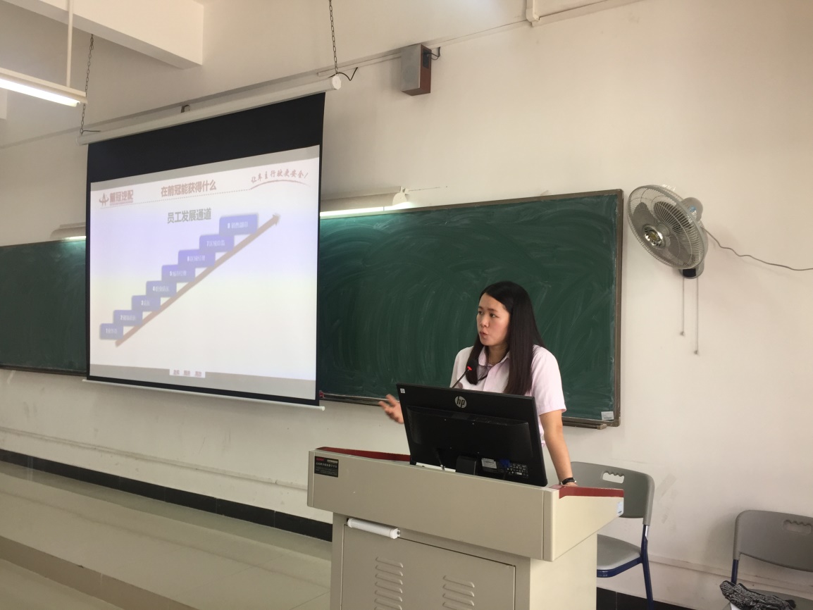 2019年6月5日上午,东莞市箭冠汽车配件制造有限公司招聘宣讲会在我校白云校区教学楼二区203举行,由箭冠公司招聘主管胡娟芝主讲,汽车工程学院辅导员蔡少德、陈莹颖和17级汽车技术服务与营销专业全体同学出席本次招聘宣讲会。
