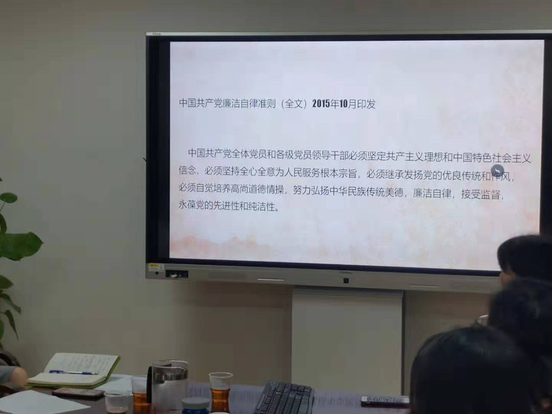 会议第四项议程是由王坤明主持,组织全体党员学习《中国共产党廉洁自律准则》。他强调,党风廉政建设和反腐败工作要常抓不懈,共产党人更应该强化自我修炼、自我约束、自我塑造,在廉洁自律上作出表率。