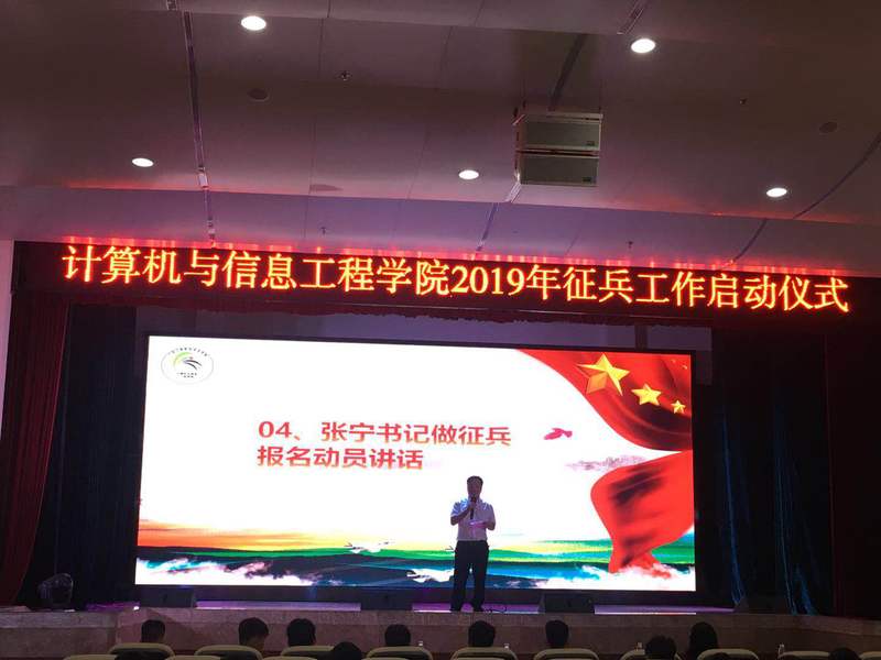 为响应国家号召,广泛开展大学生征兵宣传工作,鼓励更多大学生投身军营,计算机学院于6月25日在天河东区礼堂举行大学生征兵报名启动仪式。计算机学院党总支书记张宁、副书记张艳和三个年级的学生代表参加了本次启动仪式,会议由计算机学院辅导员苏建荣主持。