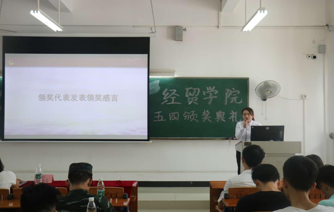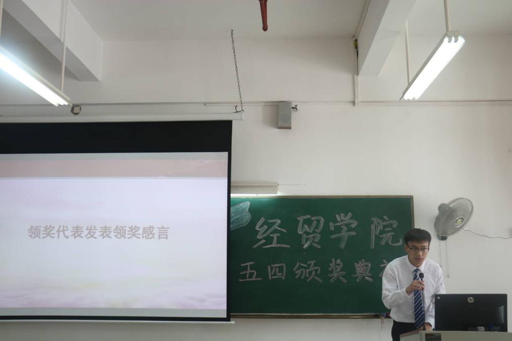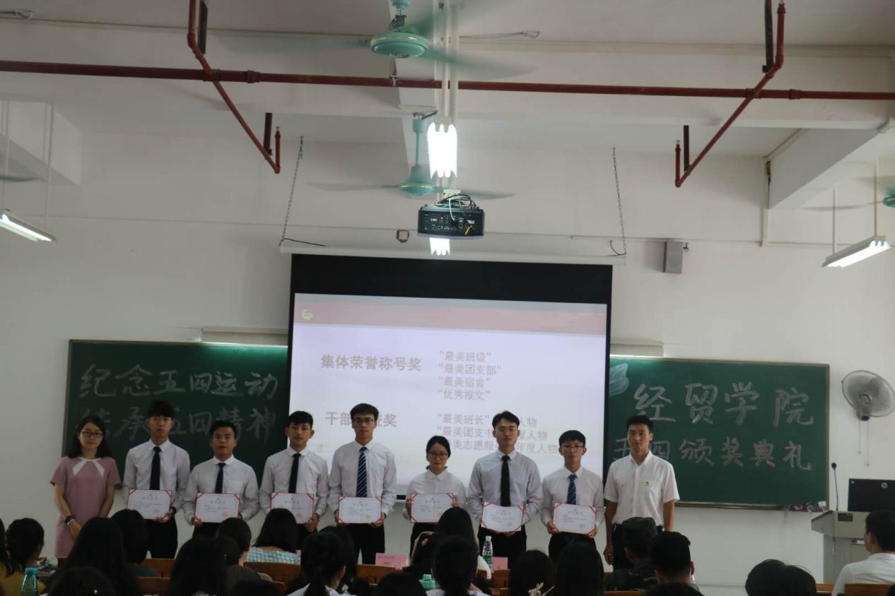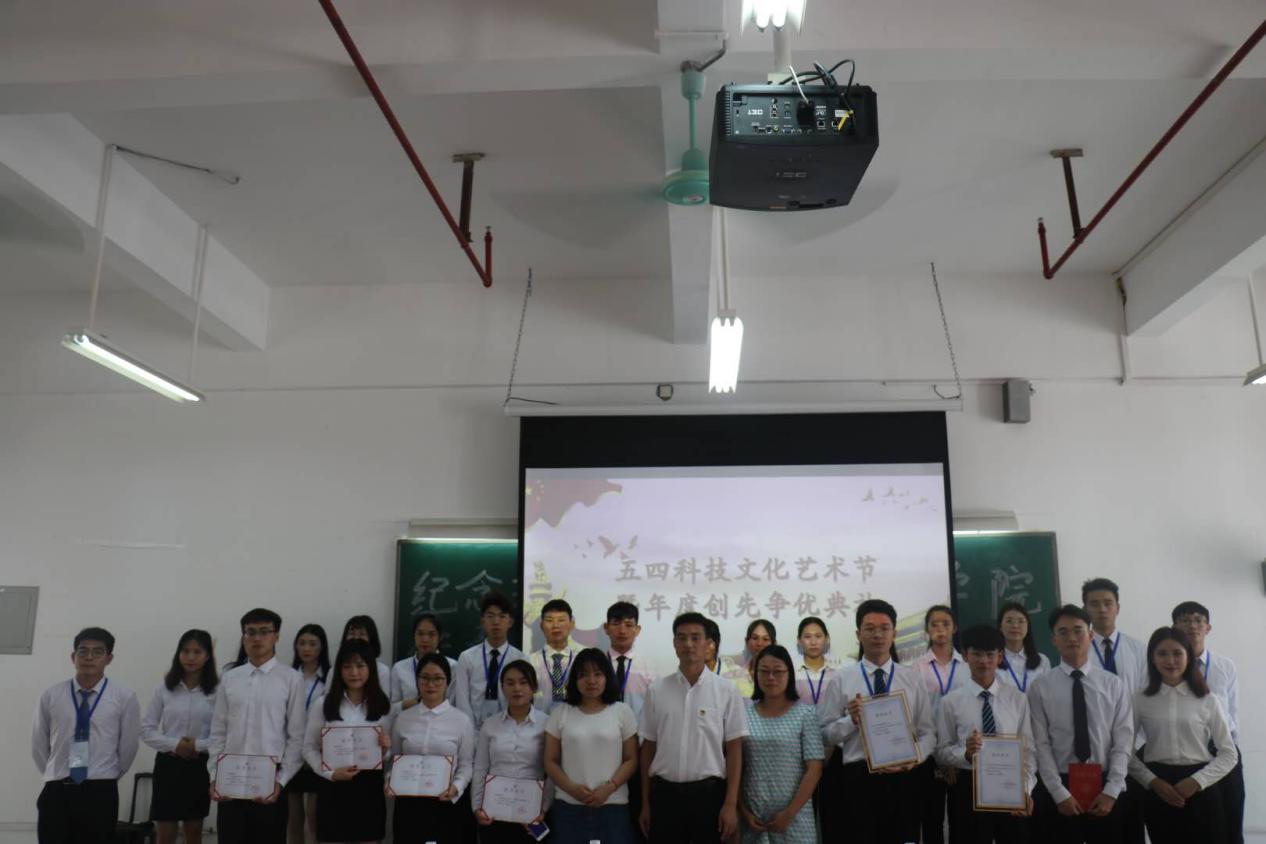 为纪念 五四运动100周年,弘扬爱国、进步、民主、科学的五四精神,加强学生的思想道德建设,提高学生综合素质,通过对在五四科技文化艺术节中表现突出的集体以及个人进行表彰,引导青年团员了解民族文化发展历程和提升文学修养,进一步增强民族自尊心,自信心和自豪感。经济贸易学院在2019年6月27日下午2点在2区203举办了五四科技文化艺术节暨年度创先争优颁奖仪式。参加本次五四颁奖典礼的学院领导以及老师有:经济贸易学院党总支副书记龚云,学工办主任黄小奇,学工办张薇薇、曾竞。