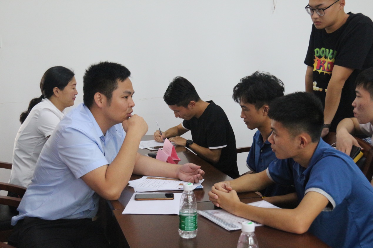 为积极响应国家“提高技能、提升就业”政策的号召,以实际行动推动职业教育发展,培养国家紧缺型汽车后市场人才,做好职业教育,促进就业的实际举措,2019年7月8日上午,汽车工程学院在明德楼一区216召开了第二期比亚迪精诚英才培育班人才双选会。会议由汽车工程学院办公室主任陈锐钊老师主持,汽车工程学院书记彭卫东,新能源汽车技术专业带头人郇锐铁,比亚迪汽车销售有限公司代表及比亚迪精诚英才班全体成员参加了人才双选会。