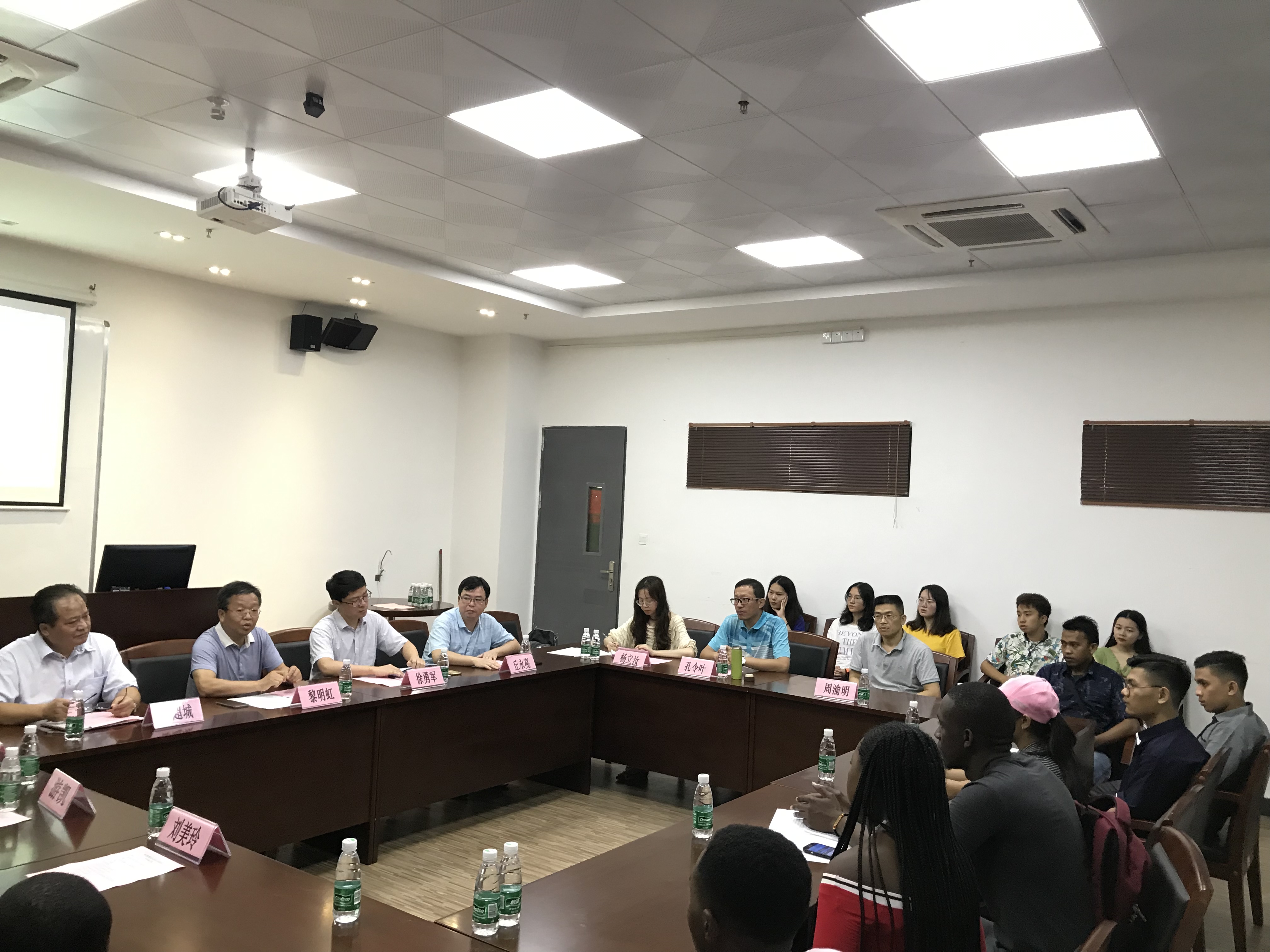 2019年7月9日上午,机电工程学院党总支书记邵超城,院长徐勇军,副院长丘永亮、游凯,机械制造与自动化专业带头人贺艳苓、留学生班主任孔令叶、分管辅导员以及机械制造与自动化专业的师生,与来自印度尼西亚和赞比亚的8名留学生,相聚白云校区,举行了留学生师生交流会,学校对外交流合作处黎明虹处长,杨立汝一同参加了交流活动。