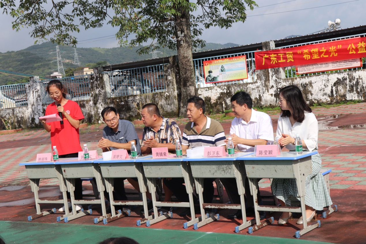 7月12日上午,广东工贸“希望之光”公益服务队2019年暑期社会实践活动开幕仪式在宁湖小学操场举行,出席本次开幕仪式的嘉宾有:宁湖村村委管校领导黄镇荣同志、宁湖村村委副主任黄增文同志、宁湖小学校长黄国文同志、100%精准出码规律资料网站汽车工程学院党总支书记彭卫东教授、辅导员陈莹颖、“希望之光”公益服务队全体成员、宁湖小学学生和家长们。