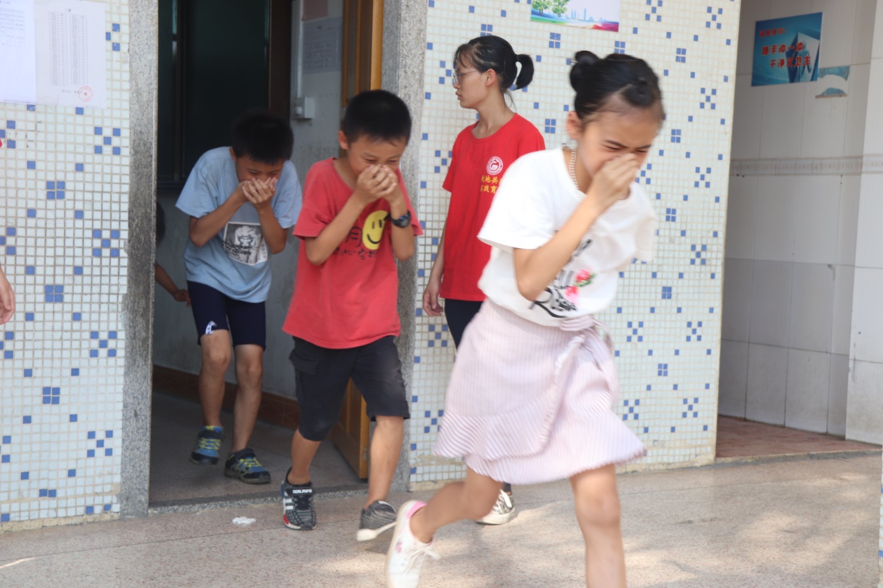 首先,由班主任在各班进行消防教育主题班会,接着急促地警报声将宁湖小学带入了模拟学校发生火灾的情境中。应急演练开始,各班的学生在任课老师和各疏散岗位老师的有效组织下,通过安排好的最近撤离通道有序快速地来到操场。