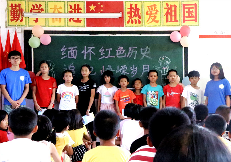 为贯彻落实习近平总书记关于讲述好中国故事,传播好中国声音,把红色资源利用好、把红色传统发扬好、把红色基因传承好,坚定理想信念等系列重要讲话精神,广东工贸“希望之光”公益服务队在7月16日在宁湖小学举办了红色革命故事会。