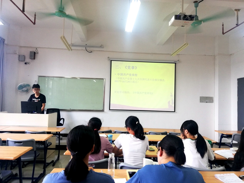 为认真学习贯彻习近平新时代中国特色社会主义思想,推进“两学一做”学习教育常态化制度化,引导党员、干部原原本本学,以理论滋养初心、以理论引领使命,增强“四个意识”、坚定“四个自信”、做到“两个维护”。2019年9月17日星期二下午2点30分,工商管理学院学生第一党支部开展了“不忘初心、牢记使命”主题教育专题学习。一支部于明德楼1区418课室开展,由李佳凝老师主讲,参与人员为工商管理学院第一党支部党员、预备党员。