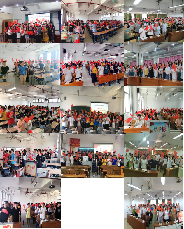 在我校党委书记和校长形势政策“第一课”唱响《我和我的祖国》的带领下,马院全体教师分别在白云、天河、荔湾校区思政课堂组织学生们接力传唱。爱国超燃,青春正好,师生们齐聚一堂,手持鲜艳的小红旗,引吭高歌,通过集体合唱歌曲《我和我的祖国》表达对中华人民共和国/新中国的深情告白和真切祝福。热情洋溢的脸庞,青春激昂的歌声,展现出工贸学子充满活力、积极向上的精神面貌。这也是一次别开生面的思政课堂,展示了马院不忘初心、上下求索,春风润雨将爱国主义教育与思想政治教育紧密结合,把学生的成长与国家的发展紧密联系,构建学生的家国观念,抒发学生的爱国情怀,落实思政育人效果。