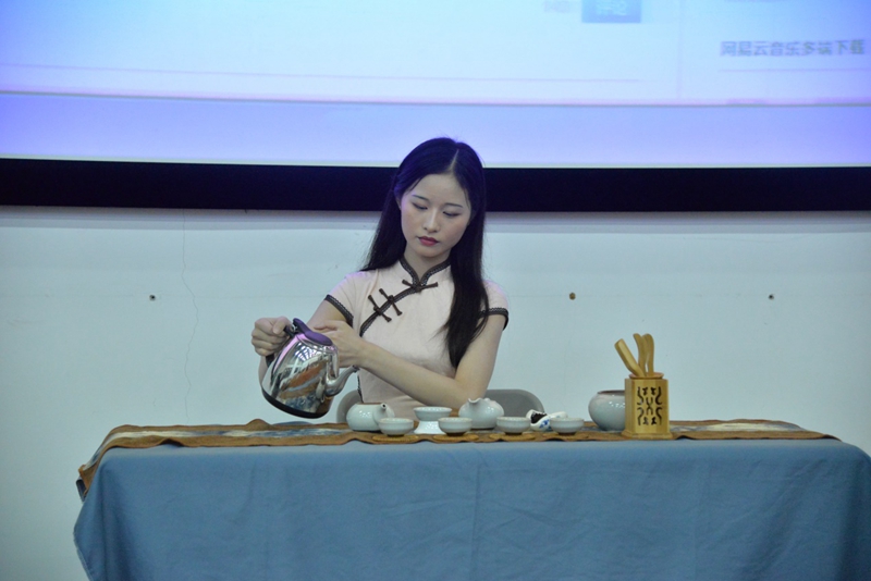 为建设三型党支部,创新组织生活方式,弘扬中华文化,2019年9月27日19:00,工商管理学院党群服务中心携手玉川茶艺社于明德楼2区306课室开展“问道﹒匠心﹒筑梦”之文化汇活动,进行茶文化的讲解, 200多名学生积极参与并且认真学习。