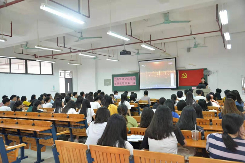 2019年10月11日下午四点,工商管理学院党总支书记思想政治理论课“第一课”在白云校区明德楼201开展,主讲人为工商管理学院党总支书记周清莲,参与人员为学院全体学生党员及团学干部。
