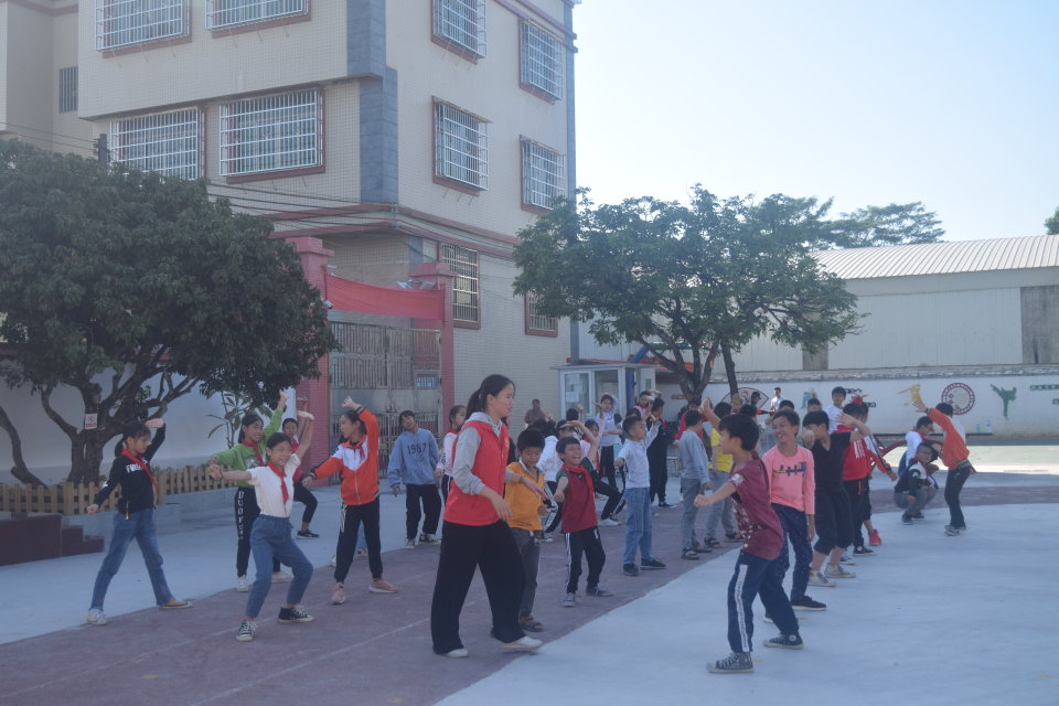汗水洒在操场上,浇灌着成功的花朵绽放。志愿者带着小朋友来到操场学习五步拳,了解更多中国武术的文化,强身健体。操场上的声音装满了快乐的笑语,在操场上尽情的玩耍学习,书写精彩生活,脸上洋溢着开心幸福的笑脸,志愿者与小朋友共同享受运动的乐趣。
