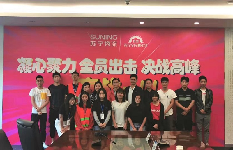 与苏宁物流中心实习学生合影