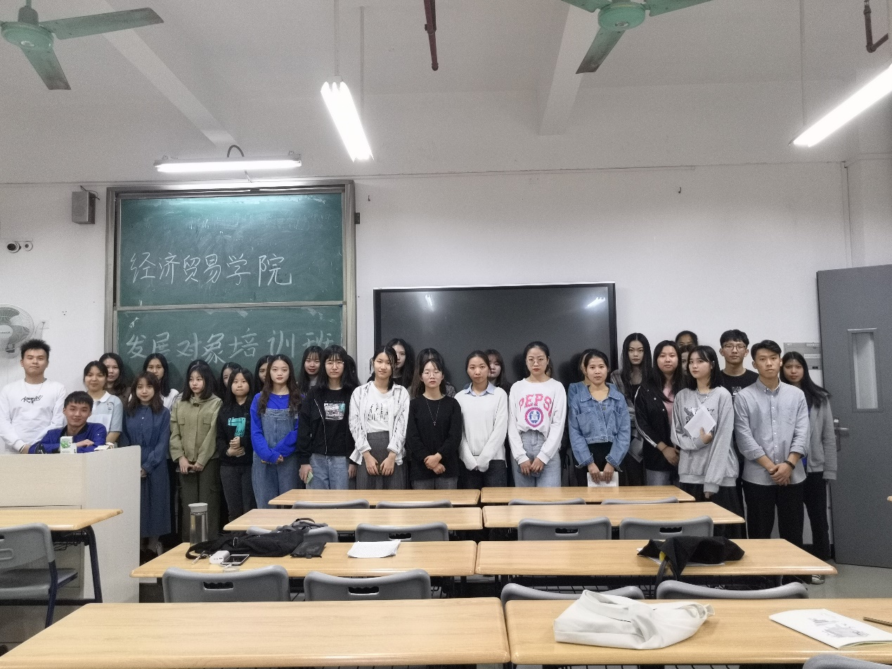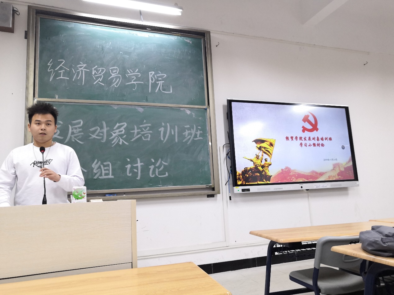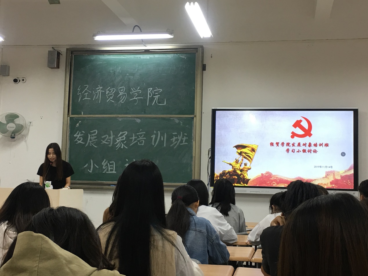 按照发展党员工作程序,遵循《发展对象党课培训安排表》要求,为使发展对象进一步加深对党的性质、纲领、任务、宗旨、纪律、党员义务和权利的认识和理解,加深对中国特色社会主义理论体系的认识,不断坚定为共产主义事业奋斗终身的信念;进一步端正入党动机,自觉加强党性锻炼,以党员标准严格要求自己,争取早日加入中国共产党,2019年11月14日晚,经济贸易学院发展对象在教学楼1-406开展了发展对象培训班学习小组讨论。
