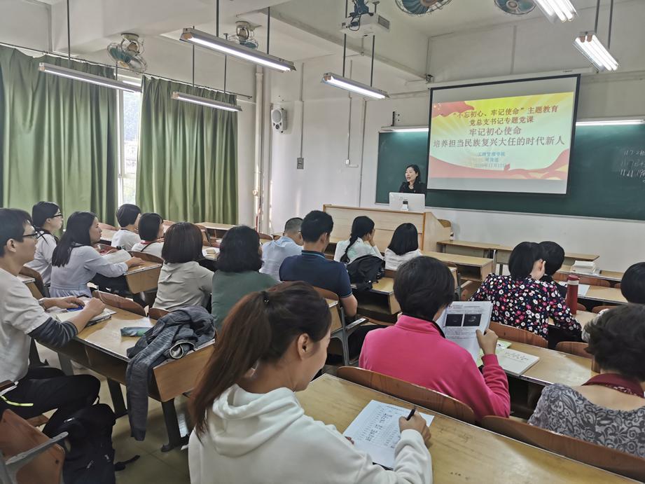 为落实“不忘初心、牢记使命”主题教育的有关精神,工商管理学院党总支于11月12日下午开展专题党课活动,由党总支书记周清莲为全体教师党员讲授专题党课——《牢记初心使命,培养担当民族复兴大任的时代新人》。