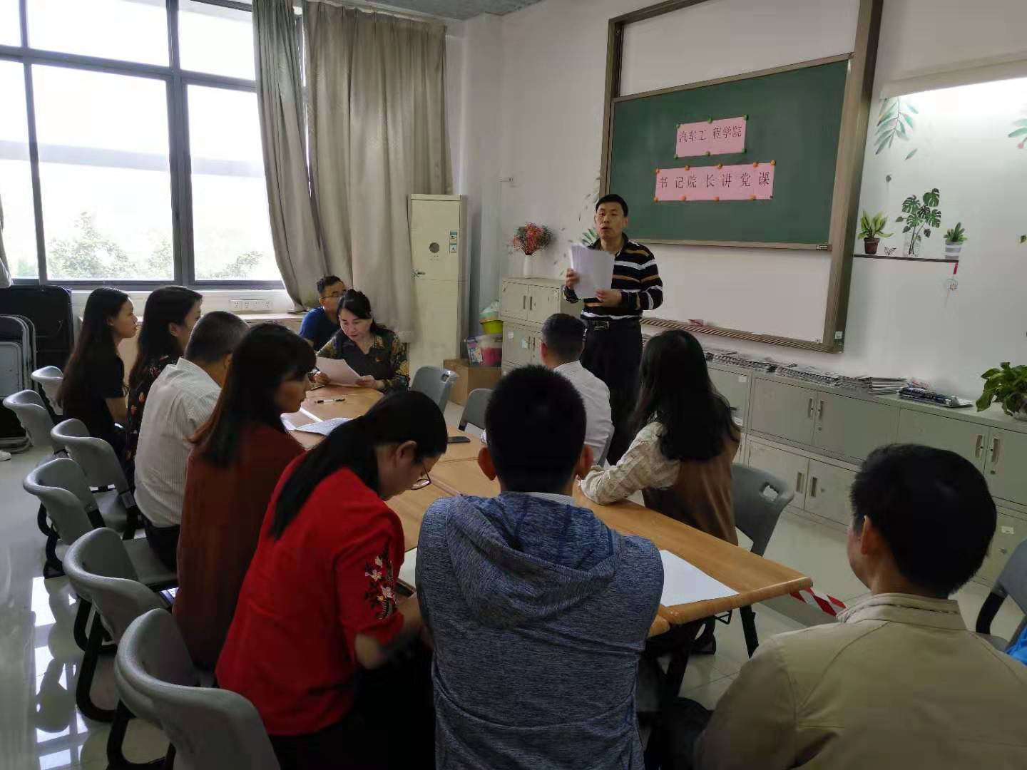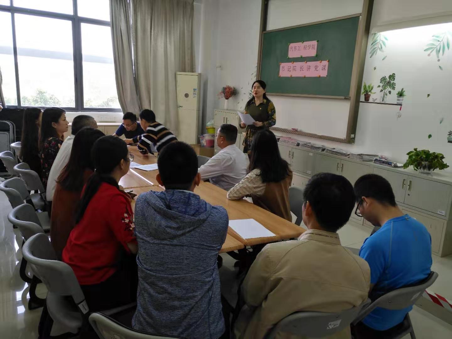 根据学校《“不忘初心、牢记使命”主题教育实施方案》,落实“三会一课”的要求,11月18日,汽车工程学院党总支在白云校区明德楼一区219开展书记党课活动,党课由汽车工程学院党总支书记彭卫东和院长王艳芬主讲,汽车工程学院全体教工党员参加活动。