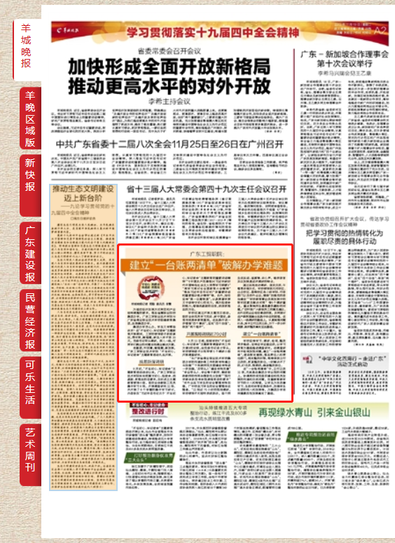 2019年11月19日,羊城晚报A2版刊登文章《广东工贸职院:建立“一台账两清单”破解办学难题》报道我校主题教育。可点击链接查看http://ep.ycwb.com/epaper/ycwb/html/2019-11/19/content_2_208078.htm