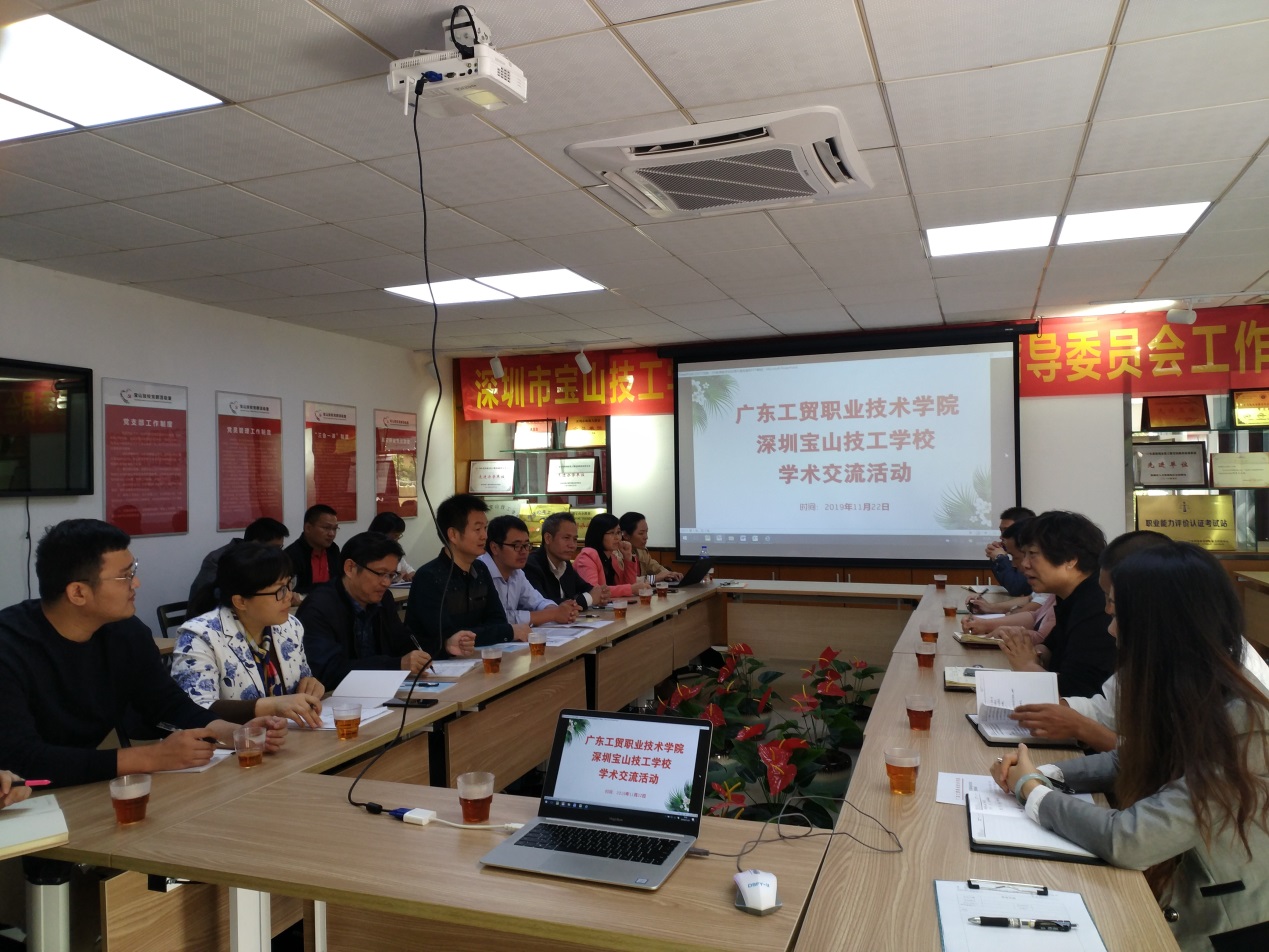 惠州宝山职业技术学校本次高职扩招对接本校6个专业,招生1300多人,为把握住教学质量,提升教学服务。由教务处副处长谭立霞带队一行9人于11月21日前往惠州宝山职业技术学院深圳教学点进行交流研讨。深圳教学点杜校长亲切地接待了我们,带领我们参观了学校的教室、机房、实训基地等。
