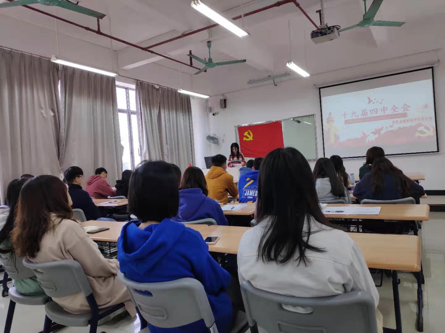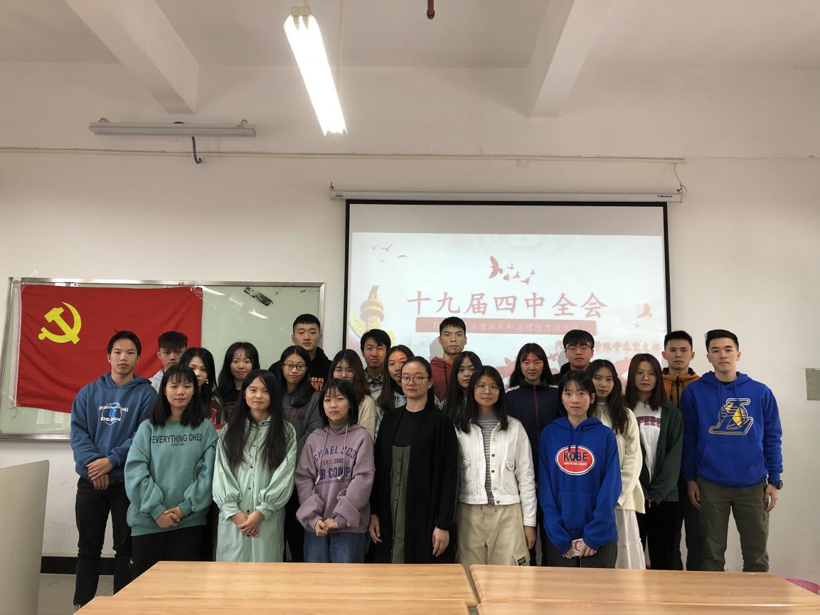 为了进一步深入学习贯彻党的十九届四中全会重要讲话精神,进一步深入了解坚持和完善中国特色社会主义制度、推进国家治理体系和治理能力现代化等一系列内容,进一步激发支部党员的初心意识,提高党员的使命担当和思想政治素养,2019年11月29日上午九点三十分,汽车工程学院学生党支部于教学楼1区410课室开展学习“党的十九届四中全会重要讲话精神”专题党课学习活动,此次学习由学生党支部书记刘彩云主讲。