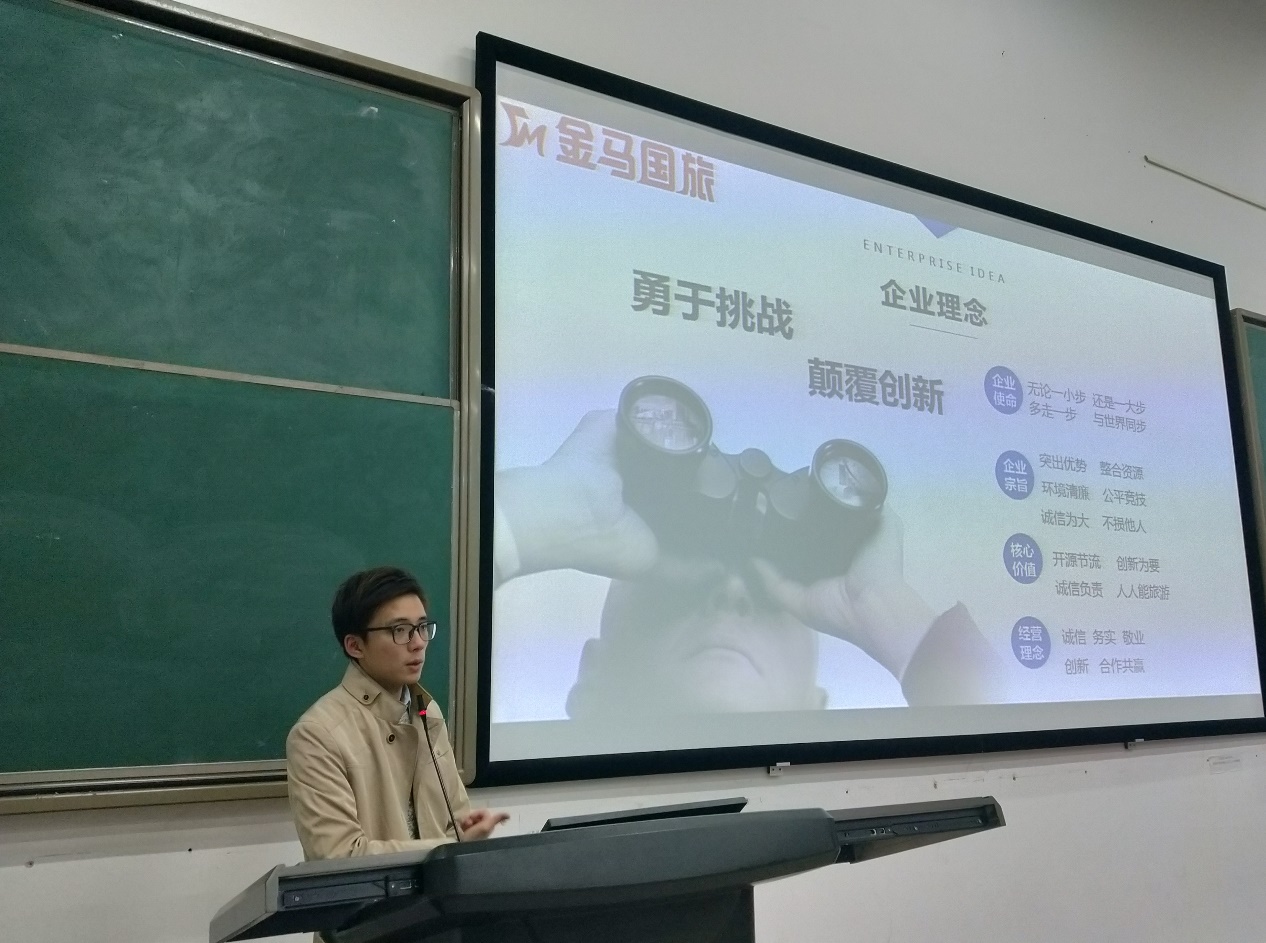 讲座中,彭兆熙为同学们讲述自己的大学生活以及丰富的工作经历,介绍了金马国际旅行社的发展概况及其导游行业的人才需求,生动地让同学们看到了旅游英语专业未来的发展前景和就业优势后,彭兆熙还同学们进行了深入的交流互动,热心为同学们解答了如何备考导游证、如何应对就业面试以及如何做好职业规划等相关问题。