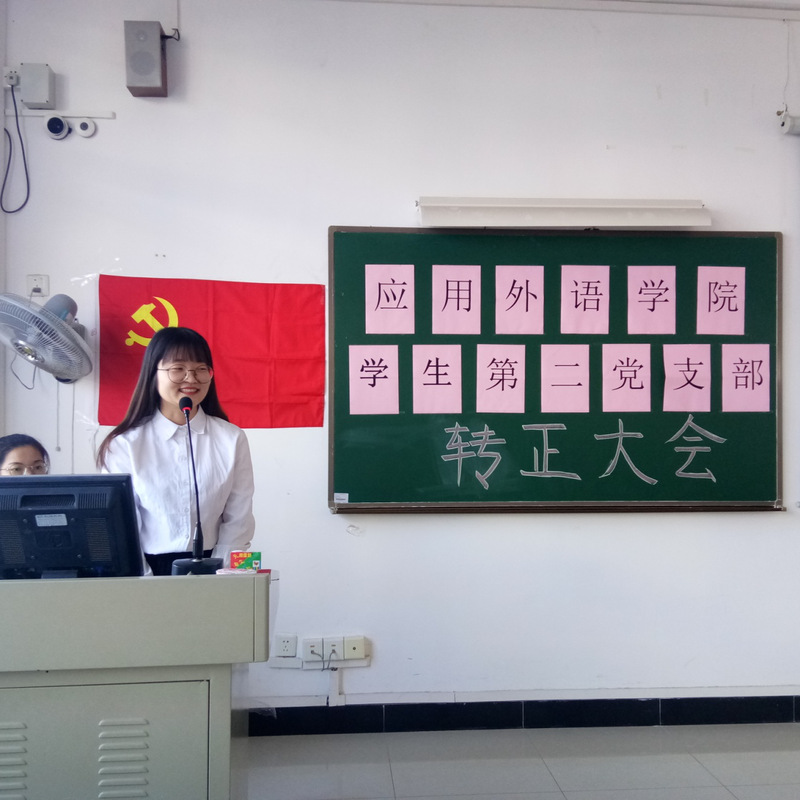 本次转正大会在雄壮的国歌中拉开了序幕。主持人伍晓滢介绍出席本次大会的党员。在主持人的主持下,本次提出转正申请的伍晓滢、肖妮等15名预备党员依次上台宣读转正申请书,详细汇报了自己在预备期间的综合表现,同时也对自己在思想、工作和生活上的不足进行了认真的总结深刻反思。支部委员会分别对每个预备党员在预备期间的教育和考察情况进行了总结,并对其是否能转正发表了意见。本次转正大会严格按照党章党规的有关程序进行,支部大会对每一位申请转正的同志进行了充分讨论并无记名投票表决,经表决,同意伍晓滢等15名预备党员成功转正成为中共正式党员。
