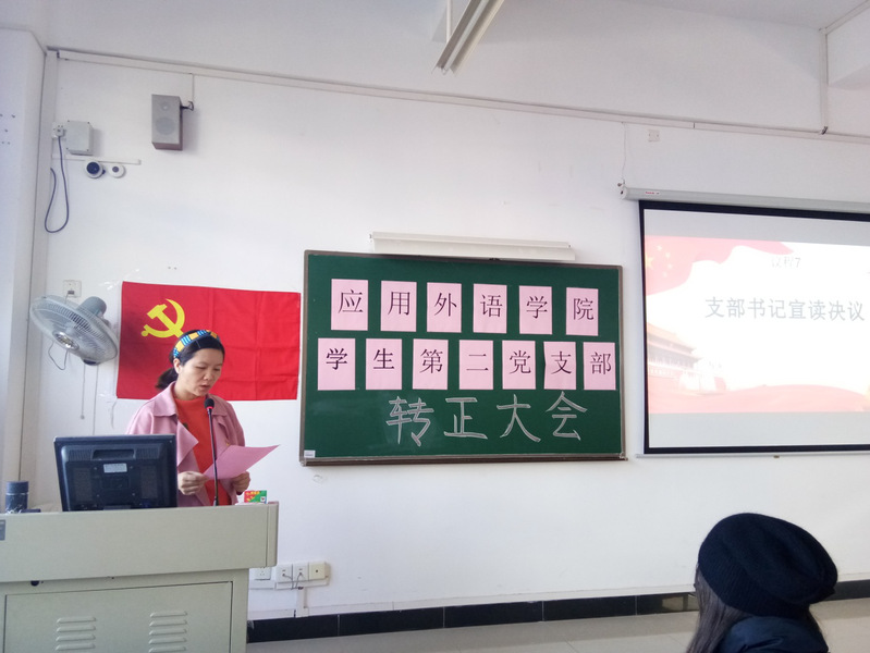 12月6日,应用外语学院学生第一党支部和第二党支部分别在明德楼1-616、1-618召开了预备党员转正大会。学生第一支部的支部书记陈晓玲老师,支委林耀佳老师、李迪老师;学生第二支部书记王燕玲老师,支委刘婵老师、冯锐骐老师以及支部所有预备党员均参加了本次大会。