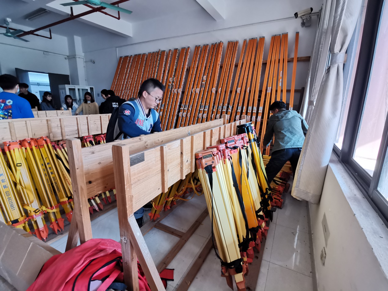 仪器室仪器数量多,摆放不规范导致空间浪费,测绘学员的党课学员们分工合作,积极参与,在行知楼211仪器室进行仪器整理、规范摆放、卫生清洁。