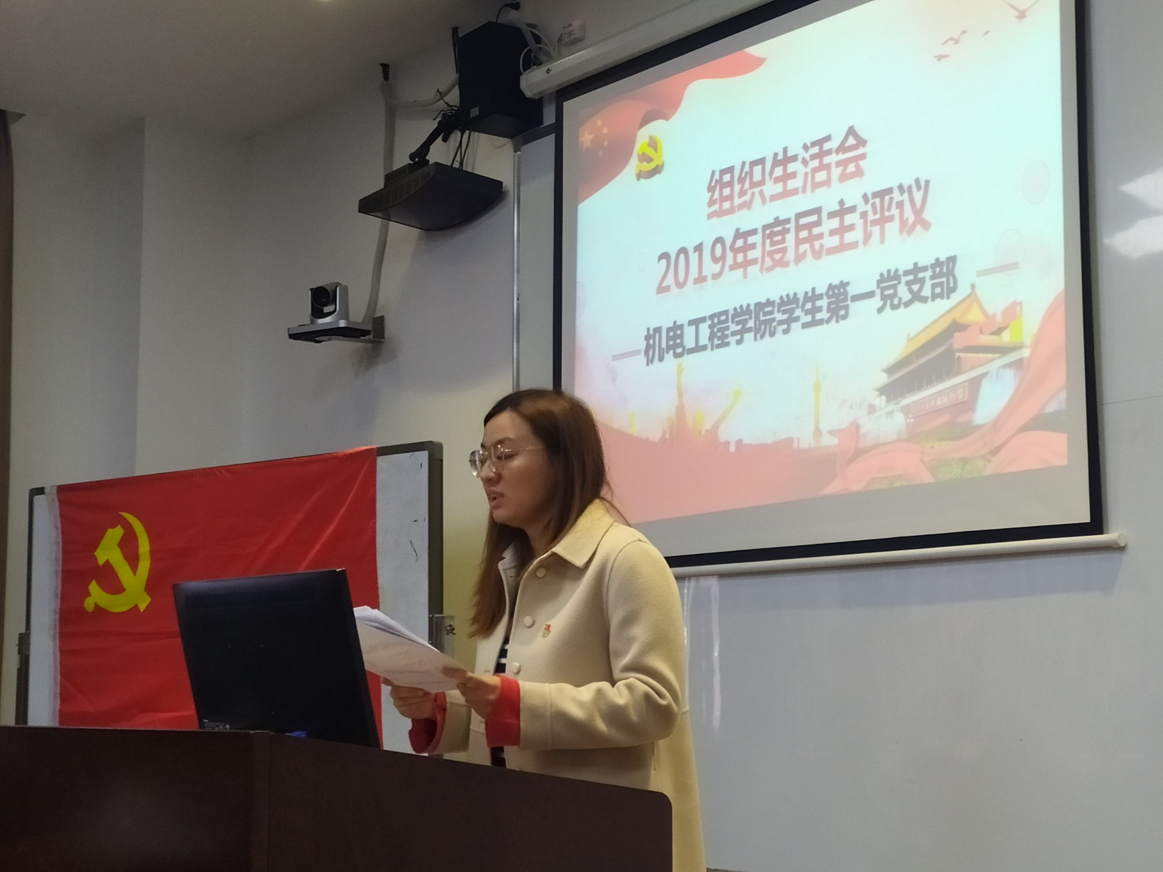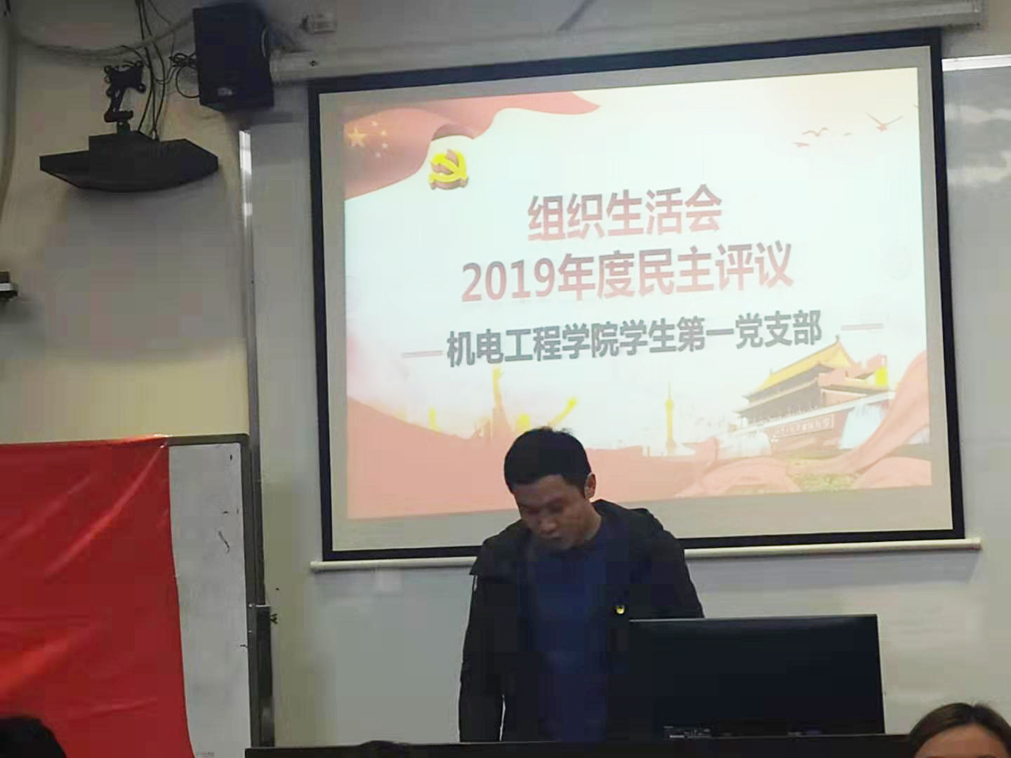 2019129日,机电工程学院学生第一党支部在明德楼1214召开组织生活会,开展批评与自我批评,进行2019年度民主评议。