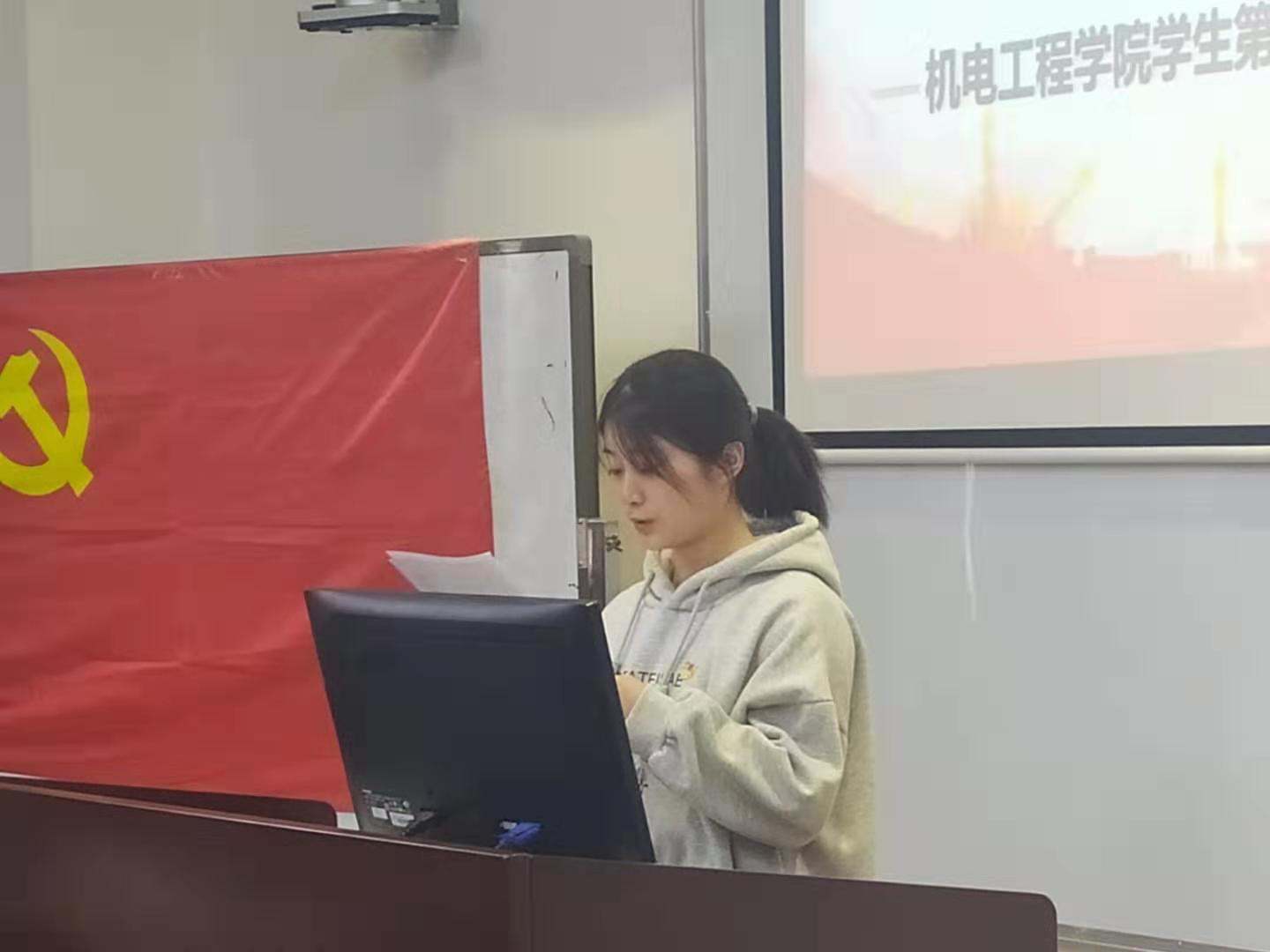 出席本次大会的有机电工程学院学生第一党支部书记李慧颖同志、支委武晓翠同志、支委林树丰同志以及机电工程学院第一党支部党员。