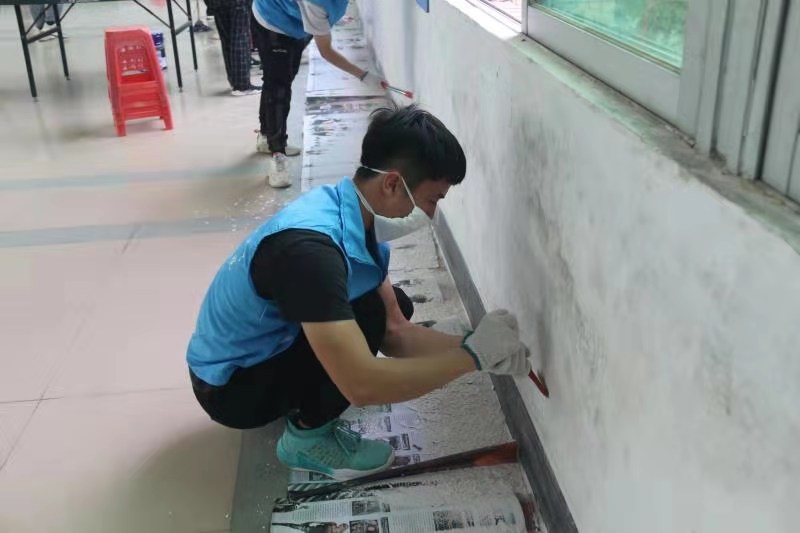为了保证活动效果,党总支提前安排学生党员于17日至19日上午对场地进行预处理,准备刷墙工具和清扫工具,整理墙面,清除垃圾,为美化工作做好准备。