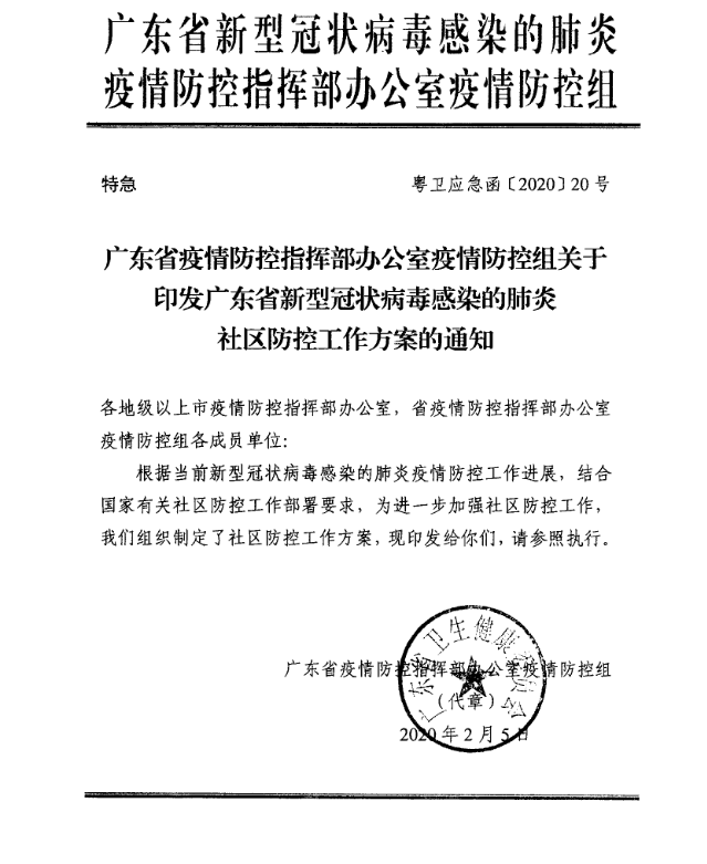 广东省疫情防控指挥部办公室疫情防控组关于印发广东省新型冠状病毒感染的肺炎社区防控工作方案的通知