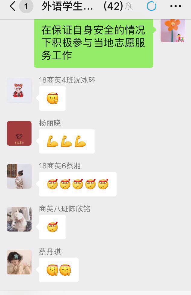党员同志们踊跃发言,通过发布语音、文字、图片在线上交流。毕业班的党员已经开始在家办公,非毕业班的党员“停课不停学”,大家都能听从指挥,少出门不聚集,不信谣不传谣不造谣。作为高校大学生党员,我们虽不能奔赴前线,但也应尽我们所能,助力打赢这场防疫防控攻坚战。支部党员陈晓惠为武汉捐款,曾琳琳给邻居赠送口罩,他们用实际行动诠释了爱的奉献,疫病无情人有情,齐心协力渡难关。
