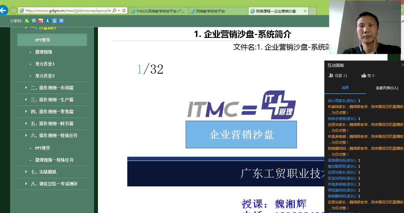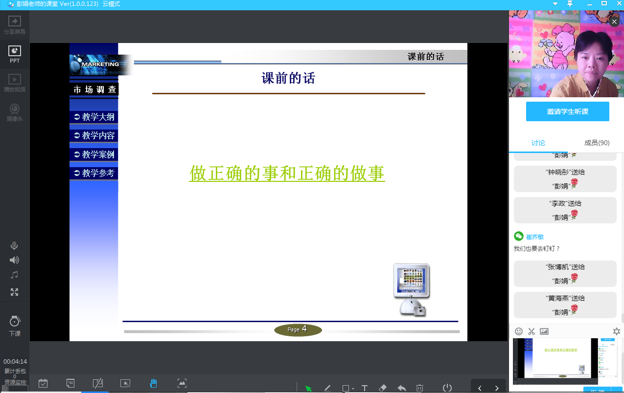 市场营销专业教师进行线上学习试讲截图