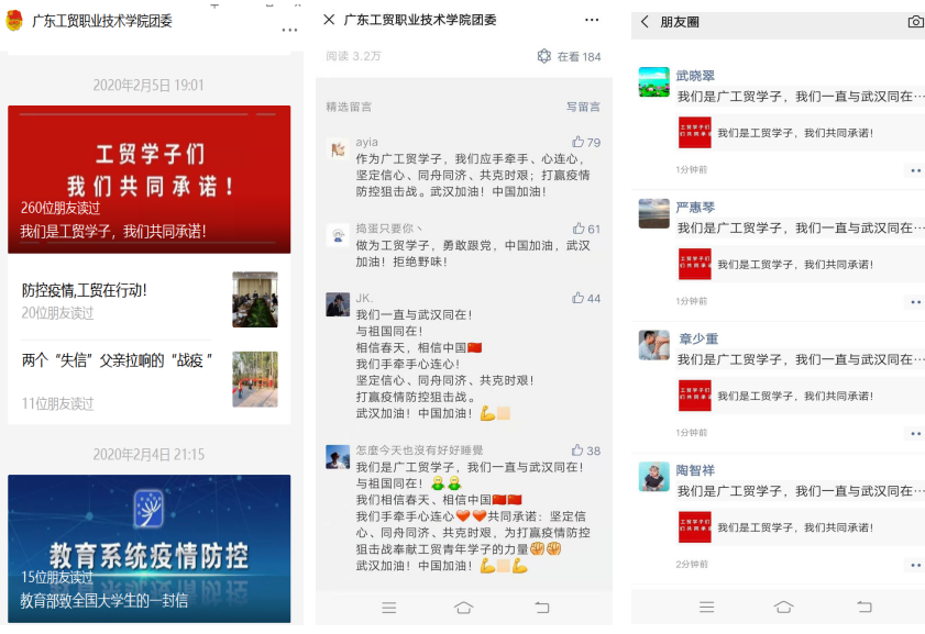 3千,留言破新高,刷爆工贸团学组织新媒体矩阵和学子朋友圈,很好地教育引导学生坚定信心,共克时艰。