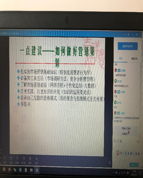 张笑:线上教学是一种新颖的教学模式,学生开始会有一些新鲜感,直播课堂形式也比较丰富,学生参与度很高,而且老师的直播内容、慕课平台上传的视频、PPT等教学内容学生可以在课后反复收听收看,那些能够自主且自觉学习的同学会非常受益,但是线上教学,师生不见面,那教师对课堂学生的把控会比较差,还是需要更丰富的学习形式激发学生的兴趣,保证每个同学都能坐在镜头前认真听课!